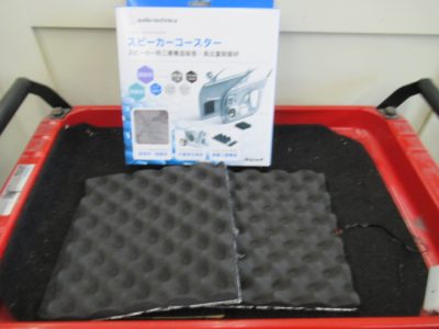 スピーカー裏に貼り付けます。後ろに出た音は出来るだけ