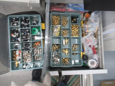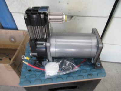 車外下に綺麗にセットされたコンプレッサーとエアータンク