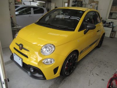 本日のお仕事はアバルトのフィアットにバックカメラを取り付けるために