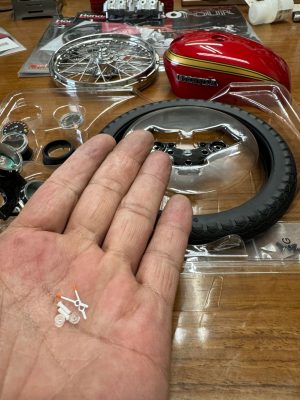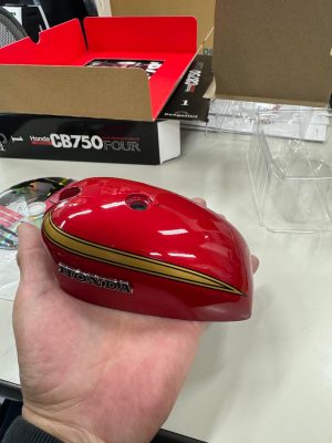 創刊号は燃料タンクにエンブレムの取り付け