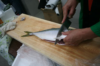 ↑実は豪快にマグロの解体って考え手のですが、台風で船が出ずに手に入らず。しかしこれだけの海鮮を仕入れて頂いて、、、、ハマチっすよ