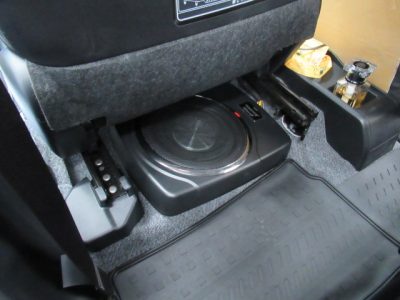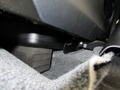 助手席シート下にギリ入りましたが、斜めで、奥の左が浮いてるので