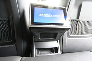 リアシート用のエアコン吹き出しを加工してモニターを取付け、エアコンの風はモニター下に通気口を設けています。