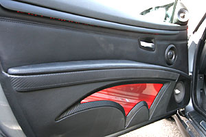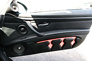 小物入れスペースを加工してディスプレイをインストール。 3ウェイスピーカーはドアアウター加工でデザインして取付けています。