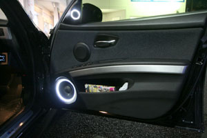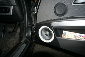 運転席下にデッキをインストール!、ドアをワンオフ加工してミッドレンジとスコーカーをインストール、ドアミラー裏にツイーターとして3ウェイ仕様