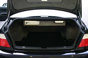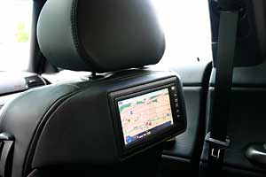 ヘッドレストではなく、ショルダー部分にモニターうめ込み。トランクは上部に新たにボックスを製作し、DVDチェンジャーとNAVをインストール。