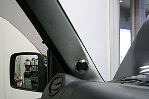 Fドアにスピーカーをアウター加工でインストール、ドアポケットもうまくデザインしています。ツイーターはフロントAピラーに埋込み。