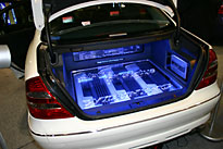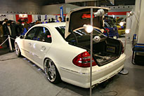 今回の出展はカーオーディオ体験ホール!!、アルパインの新製品「F1Status」シリーズをインストールしたBENZ Eクラス出展ブースでは、「6.1ch」大迫力のカーシアターを体験して頂き、非常に好評でした!!