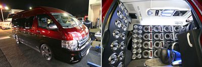 Rockford Fosgateのインパクト抜群ハイエースがウイニングに登場、脳天直撃のサウンドを楽しんで頂きました。