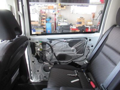 リヤスピーカはスライドドアにあるので、内貼りを取ります