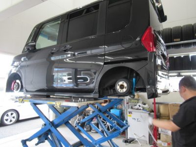 常連のお客様の要望で、あと数mm落としたいのでの車高調整