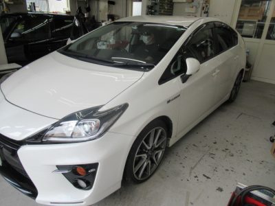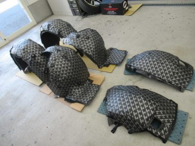 フロントのワイパーの内貼りの周りも行いますので、ワイパーやカバーも取り外しました!