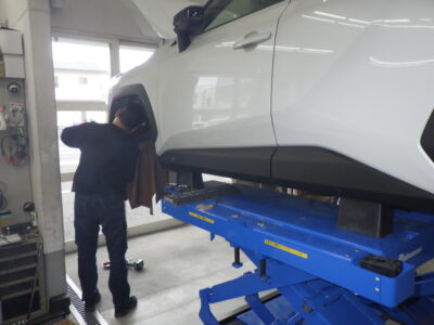 本日のお仕事は 板金修理でお預かりのお車の