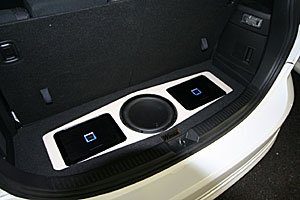 ラベッジスペースにサブウーハー、アンプをインストール。