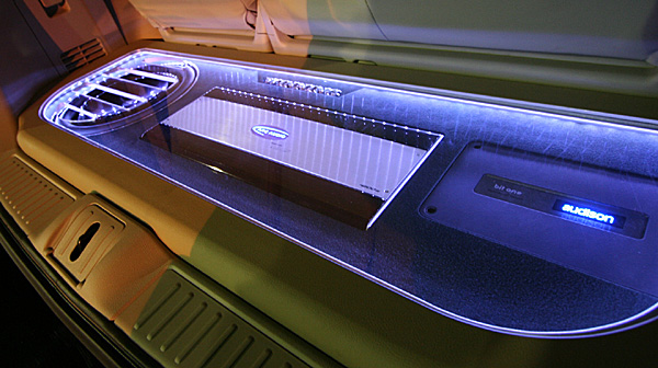 ラゲッジスペースにサブウーハー、アンプ、プロセッサーをインストール。
