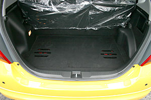 スペアタイヤ部分を利用して、サブウーハー、アンプ、チェンジャーをインストール。ボードでカバーすればトランクスペースも問題なく利用できます。