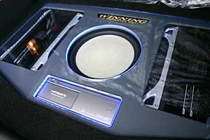 ラゲッジスペースにウーハー、アンプ、チェンジャーをインストール。