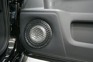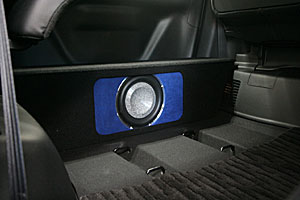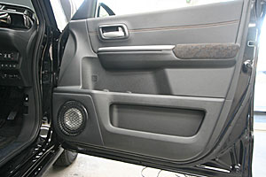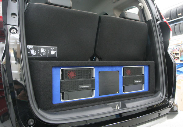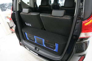 Fピラーにツイーターを埋込み、ミッドスピーカーもドアを加工してインストール! ラゲッジスペースにボックスを製作、サブウーハー、アンプ、プロセッサー等をインストールしております。サードシートの跳ね上げ格納やリクライニングも問題ありません!