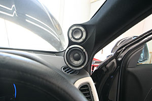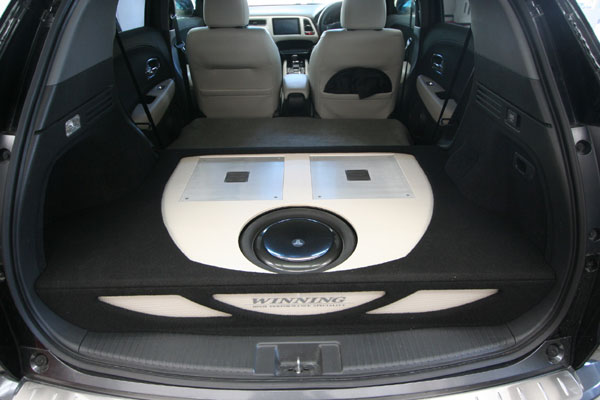 ラゲッジスペースをワンオフ加工して、サブウーハー、アンプをインストール。フロントピラーにツイーター、ミッドレンジ、ドアにウーハーとインストールした3ウェイ仕様です