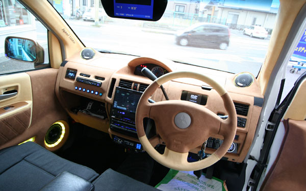 ダッシュボード、ハンドル、ドアなどの内装を張り替えです。
