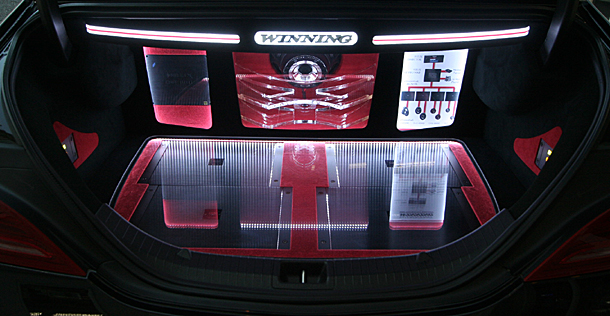 リアトランクルームには、サブウーハー、アンプ、プロセッサーなどをインストール。