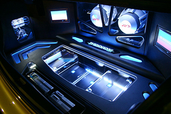 ウーハ-×2用のボックスはアクリル仕上げ&ネオンライト。