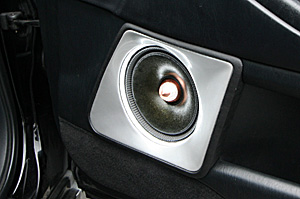 フロンとスピーカー、センタスピーカーをインストール。スピーカー周りにLEDライトをうめ込んで演出しております。