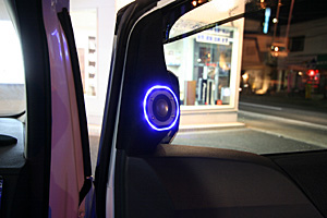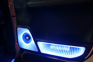 ドアスピーカーアウター加工、ツイーター埋込み処理し、ネオンライトで演出