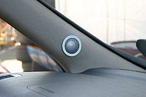ツイーターはフロントピラーにうめ込み、ミッドをドアへアウター加工。