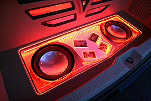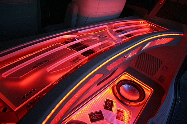 ラゲッジスペースにアンプ、ウーハーなどをイルミネーション演出でインストール。