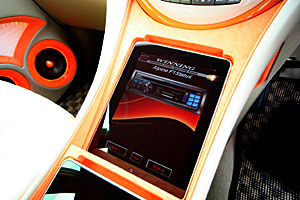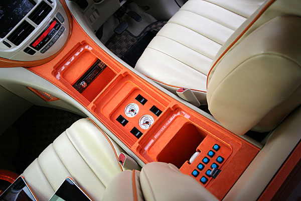 フロントコンソールを延長デザイン、iPadやメーターパネル、各スイッチをこちらに集中しています。