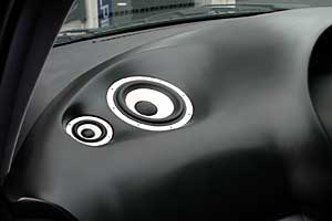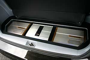 トランク分にはアンプ×2、プロセッサーを、リアハッチにスピーカー。