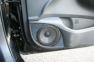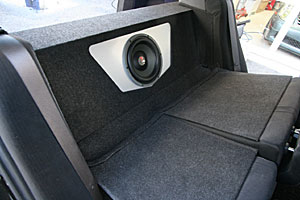ラゲッジルームにアンプ、サブウーハーなどをインストール、ブルーLEDで演出しています。 スピーカーはツイーターはFピラーに埋込み、ミッドはFドアをアウター加工でインストール、コンソールを加工してデッキを取付けています。