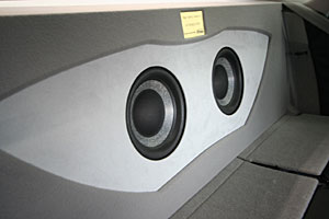 ラゲッジスペースを加工、サブウーハー、アンプなどインストール!荷物にも影響の少ないようにとりつけ。