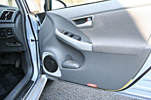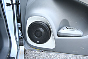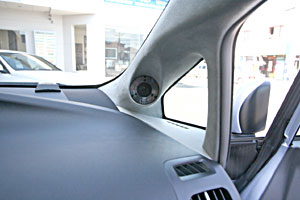 Fパネルを加工して2NDナビを取り付け。ツイーターをFピラーに埋込み処理、ミッドスピーカーはFドアにアウター加工でインストール。