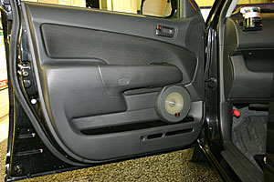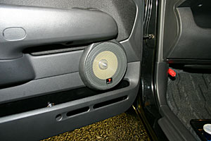 ダッシュ上にツイーターを加工してインストール、ミッドスピーカーはこの車はドアに純正スピーカーが無いので、アウター加工で取り付けています。アンプ等は運転席下にボードを作ってインストールしています。