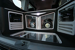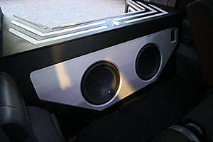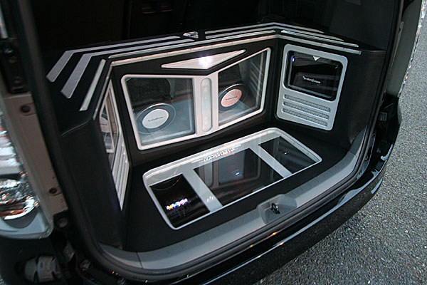 ラゲッジスペーにウーハー、アンプなどをインストール。