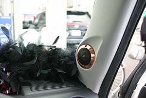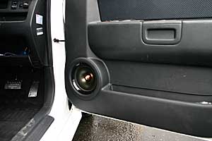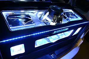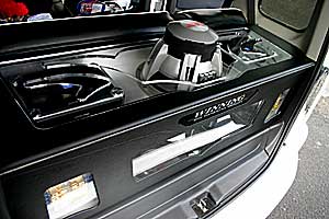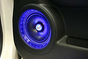 トランクルームやドアミッドスピーカーなど、インパクトあるネオンのインストールです。