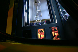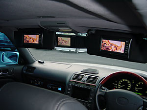 ミラーモニター、バイザーモニター、ヘッドレストモニター、、、そしてトランクにもモニターがインストール。トランクとリアトレー部分にはアクリ&ネオン管で美しく演出、そしてサイドステップにもLED。