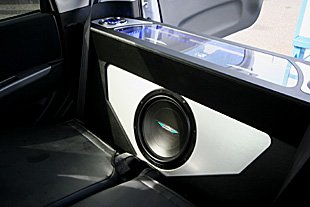 、ミッドスピーカーはドアをアウター加工して取付けています。