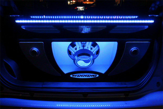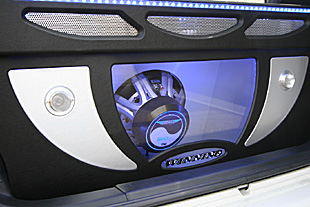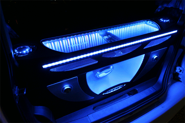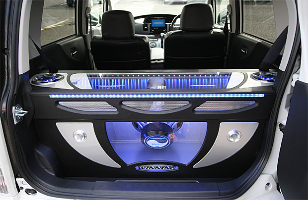 アセクションはアンプ、リアスピーカー、サブウーハー、エアサスタンクなどをデザインしてインストール。(イルミネーションは可変タイプなのでかなり奇麗です)