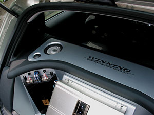 ヘッドユニットはALPINE「CDA-7990J」、フロントコンソール部分のエアコン操作部をグローブボックスに移設し、モニターを埋め込みインストール。 ツイーターはピラーにうめ込み、ミッドスピーカーはドア純正位置を加工しています。