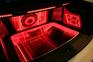 リアトランクルームには、サブウーハー、アンプ、プロセッサーなどをインストール。