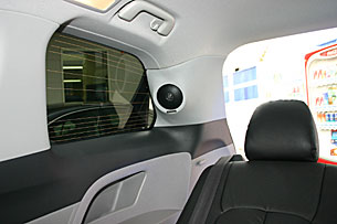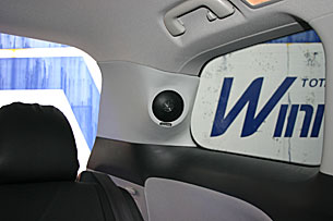 Bピラーにもリアスピーカーをインストールし、本格的に楽しめるシアター仕様となっています。