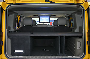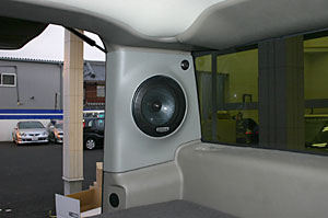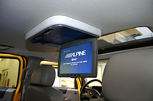 ALPINE8インチモニターをメインに、5.1chシアターシステム。15インチワイドのフリップダウンモニター、トランクルームにアンプ、サブウーハーを取り付け、スペースを出来るだけ確保して、簡易ベットにもなります。