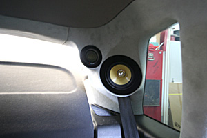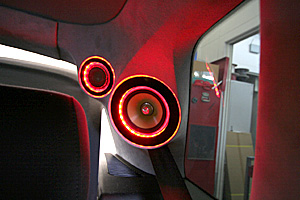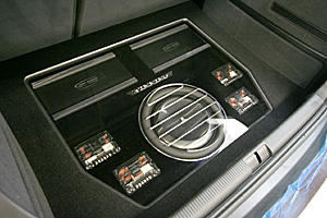 ラゲッチルームにアンプ、サブウーハー、リアピラーにスピーカーにうめ込み処理。!