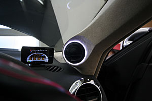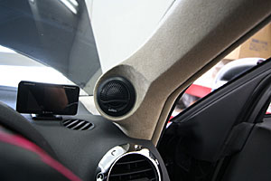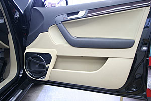 Fドアをアウター加工&LED処理にてスピーカーをインストール、ピラーには同じくツイーターを埋込み処理。