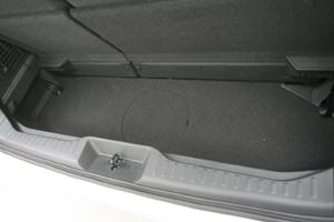 ラゲッジスペースをワンオフ加工、プロセッサーやサブウーハーをインストール。サブウーハーは透過するボードで隠し、荷物への影響を最小限にとどめています。