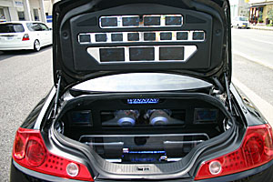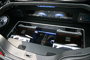 トランクルームを中心にリメイクです。 トランス上部にモニターを15枚インストール。静止画面ではわかりにくいですが、このモニターは自動で映像が切り替わる仕様となっており、流れるように画像が切り替わっていくのは爽快です。