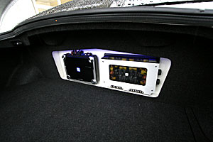 ラゲッジスペースを加工して、アンプなどインストール。